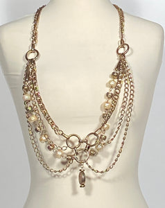 Heavy Goldtone & Pearl Colored Embossed Spacers 4 Layered Chain Belt