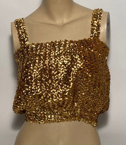 Creations III 1980s Black, Gold, & White Strapped Sequin Half Tube Top