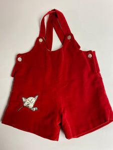 Vintage Valentine Romper Infant Red Velvet Jumper Kitty Embroidery
