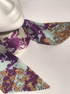 Vintage 1970s Purple Blue Abstract Patterned Head & Neck Scarf