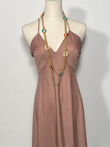Multi Strand Circular Colored Accent Triple Chain Long Necklace