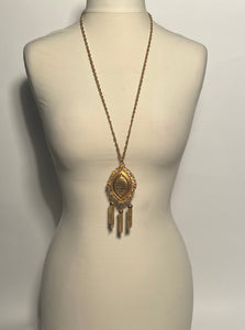 1970s Long Tassel Necklace Gold Tone Colored Medallion By Lisner