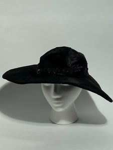 Vintage 1940s Black Fur Felt Abstract Hat Sequin Pine Cone By Doree