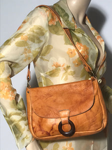 1970s Soft Leather Shoulder Hobo Handbag Flap Closure Circle Accent