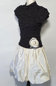 1980s Nuance Taffeta Black White Bubble Prom Dress Sequin Rose