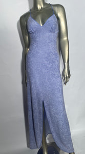 1970s Purple Criss Cross Back Slit Front Ribbed Terrycloth Maxi Dress