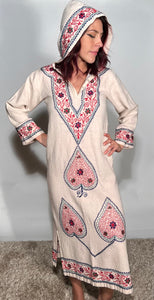 1970s Floral Embroidered Indian 100% Cotton Hippie Hooded Pull Over Tunic XS